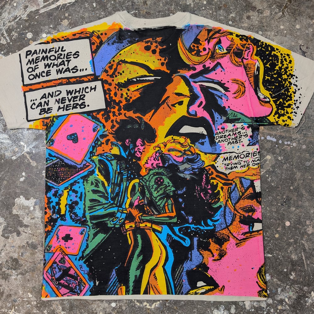 This is a pre-order for Full Deck T-shirt. Limited run. Available for 72 hours ONLY. Orders ship within four / five weeks of pre-order close. Available in natural color T front and back print. Screen printed traditionally in studio using highest quality water based inks for a classic look and feel. Printed on soft and durable cotton blend ring spun 9 oz. heavyweight blanks. Sizes above 3X printed on 6 oz 100% cotton ring spun T's. Four color mega front and back print with multiple blends. + woven neck label. Ships in Action Tees screen printed padded mailer. Screen printed in studio by Zach Merrill. Printed and assembled by hand in Pittsburgh, PA. All registered trademarks & copyrights are property of respective owners. Action Tees does not claim ownership of characters. Small batch limited print runs only. This is a collage of reworked elements, hand drawing, vectored, toned, textured and colored from various parts and pieces. Original references from various "Gambit" comics by Klaus Janson, Jason Gorder, Steve Buccelato, Howard Mackie, and Lee Weeks.